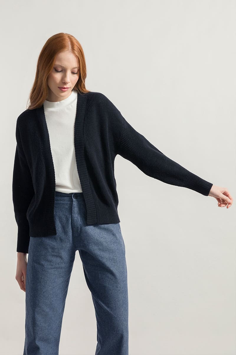 Cardigan Irma aus recycelter Baumwolle - Schwarz Lavagna