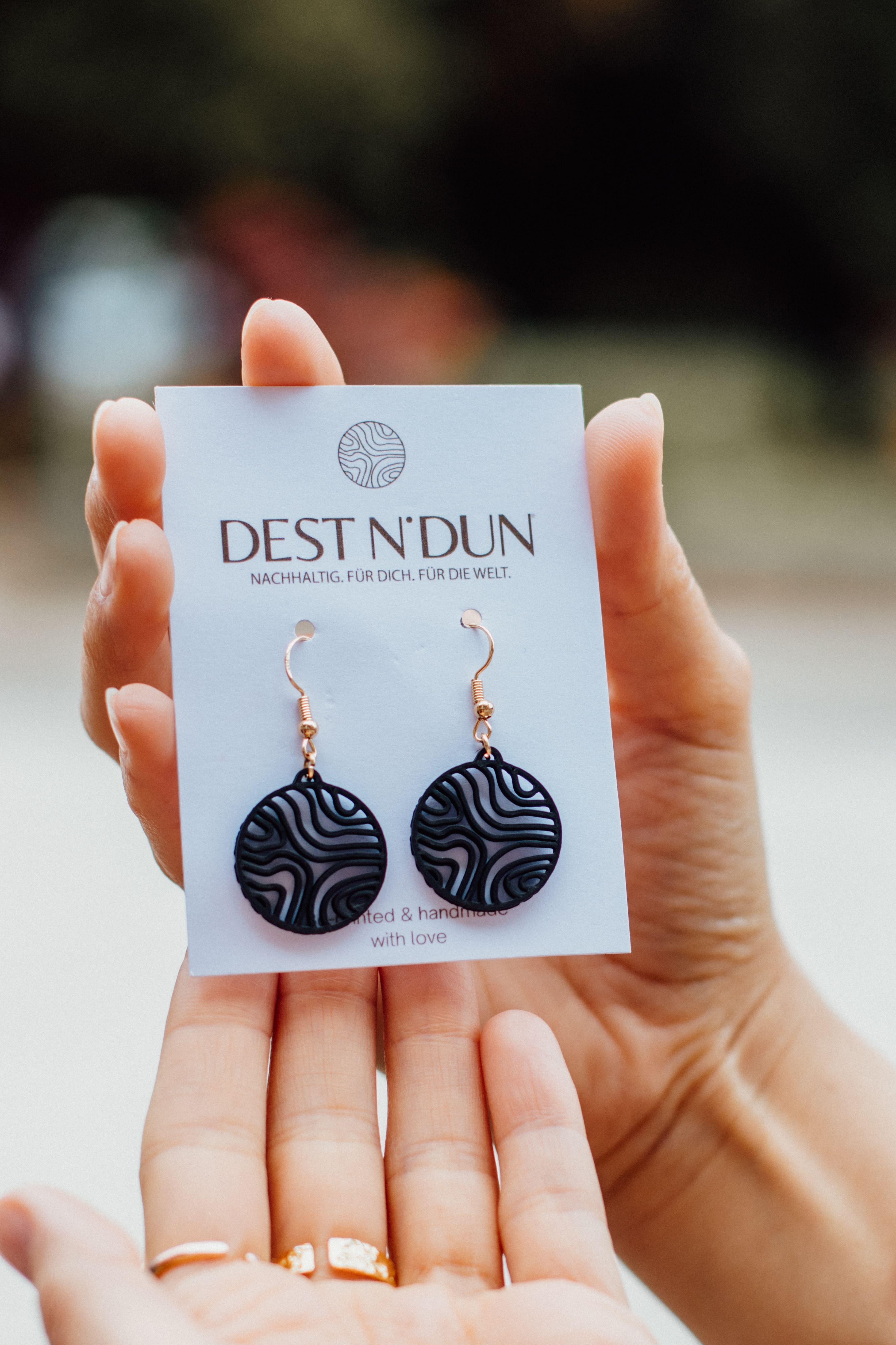 Die Ohrringe werden in einem kleinen, regionalen Atelier mit viel Liebe handgefertigt. Dabei kommen innovative und umweltfreundliche Materialien zum Einsatz: Sie bestehen aus biologisch abbaubarer Pflanzenstärke (PLA), die durch 3D-Druck ressourcenschonend verarbeitet wird – ohne Produktionsabfälle.