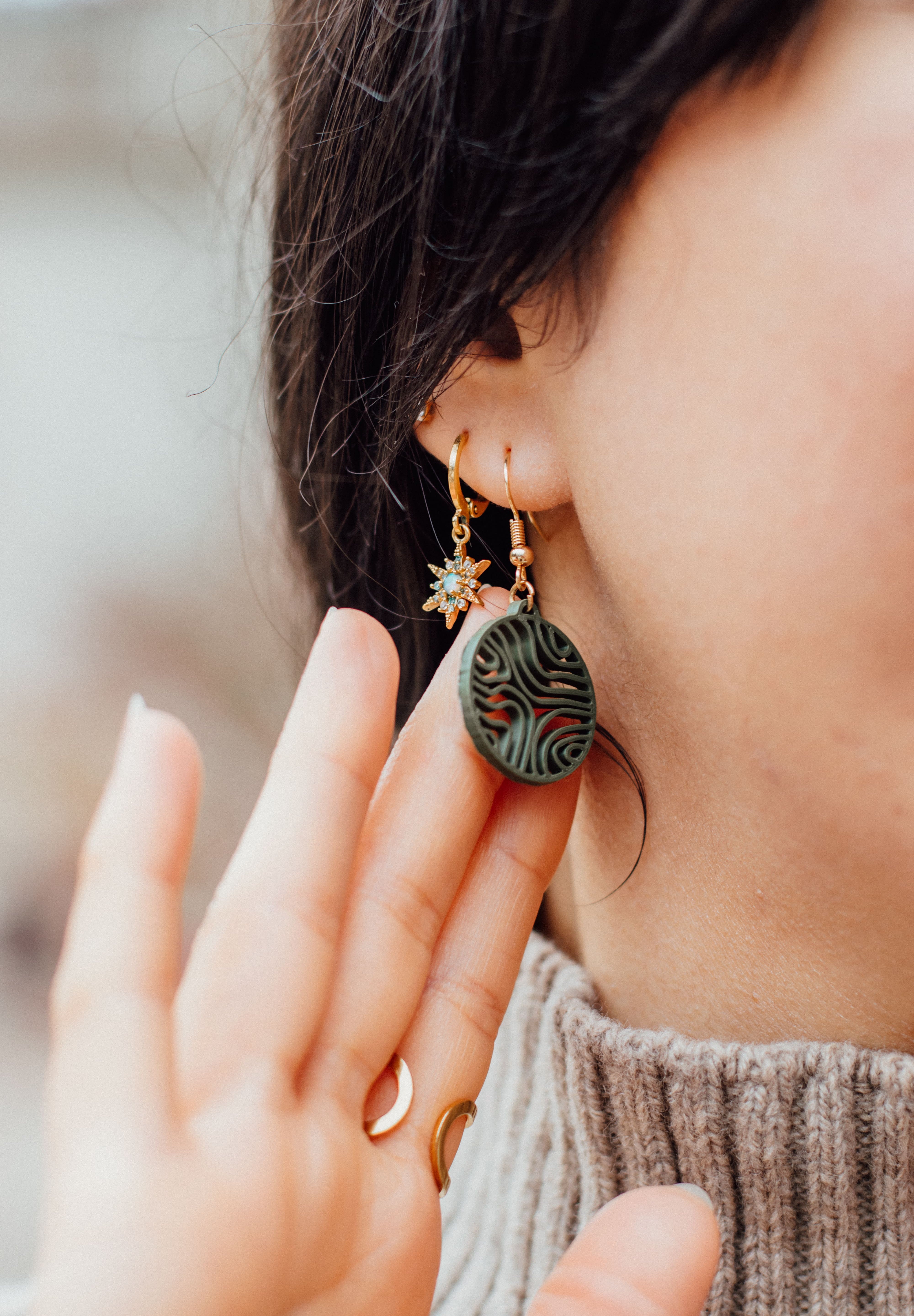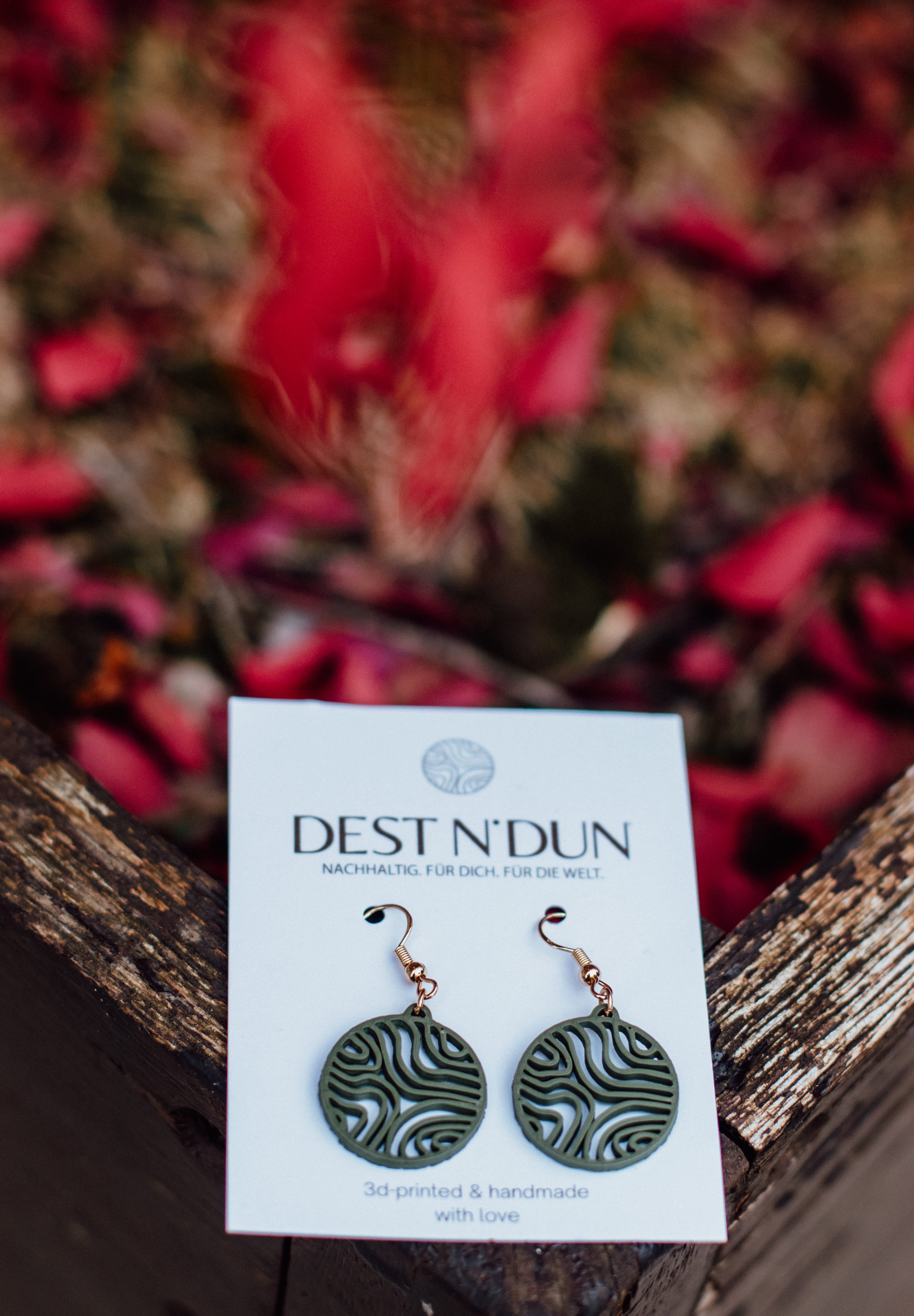 Die Ohrringe werden in einem kleinen, regionalen Atelier mit viel Liebe handgefertigt. Dabei kommen innovative und umweltfreundliche Materialien zum Einsatz: Sie bestehen aus biologisch abbaubarer Pflanzenstärke (PLA), die durch 3D-Druck ressourcenschonend verarbeitet wird – ohne Produktionsabfälle.
