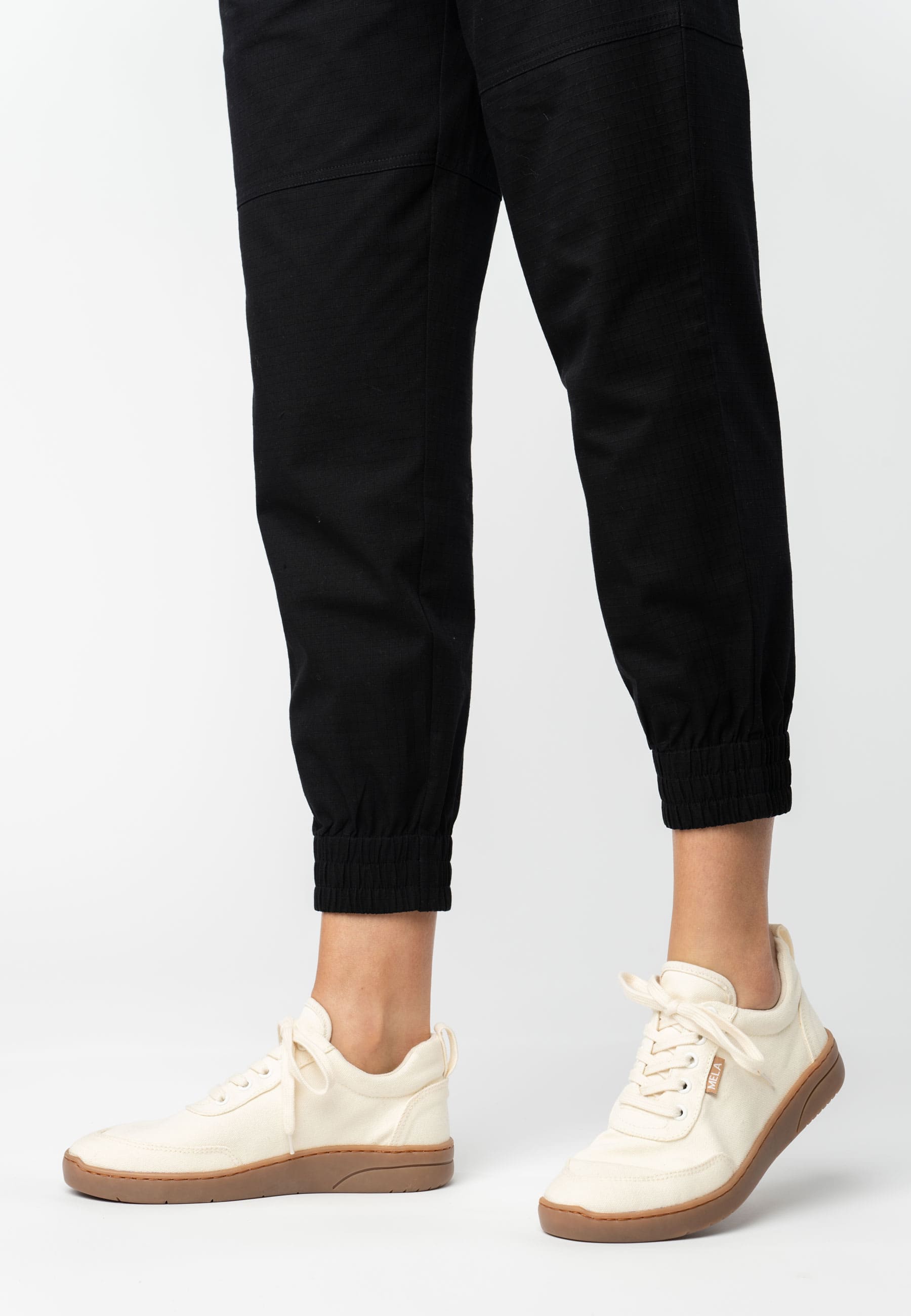 Damit hat MELA ein weiteres Produkt geschaffen, das unseren ganzheitlichen und innovativen Nachhaltigkeitsanspruch fortführt. MELA Sneaker sind die perfekten Allrounder: Der robuste Biobaumwoll-Canvas macht die Schuhe besonders atmungsaktiv. Die Sohle aus Naturkautschuk sorgt für eine gute Dämpfung und ein weiches und angenehmes Tragegefühl. Gleichzeitig verleiht sie den Sneaker Flexibilität und Rutschfestigkeit.