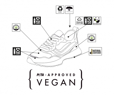 - Sohle aus mindestens 40% Naturkautschuk (ungebleicht) aus Vietnam und 10% recyceltem Kautschuk