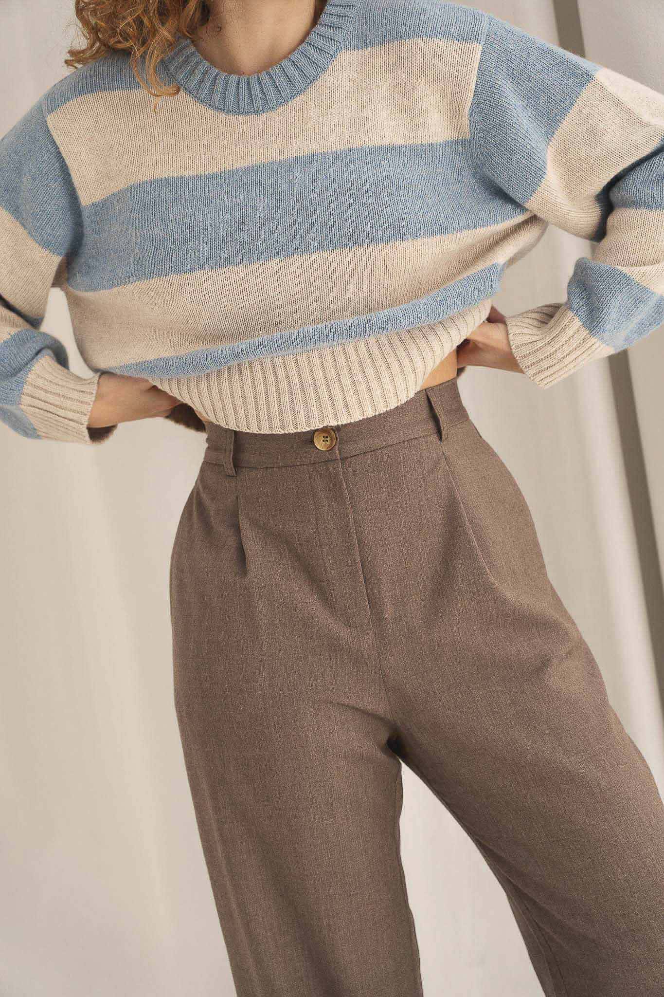 Deine Lieblingshose aus warmem und leichtem Wollstoff. Die Mara-Hose ist für ihre Passform beliebt. Sie wurde aus hochwertigem Deadstock-Wollstoff gefertigt – perfekt für die Herbst-/Wintersaison.