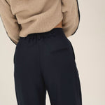 Diese maßgeschneiderte Hose bietet eine weite Passform, einen elastischen Bund und weiche Vorderfalten für einen eleganten Look.