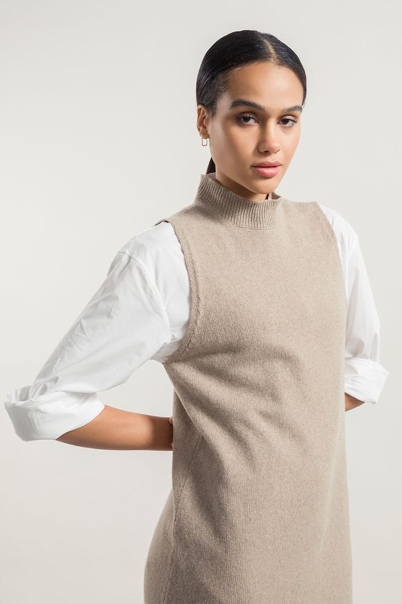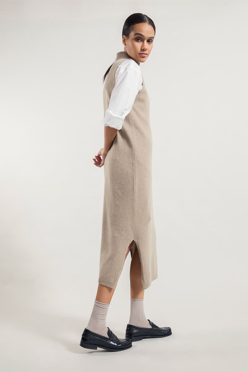 Kleid Michaela aus recycelter Kaschmirwolle - Beige Sabbia