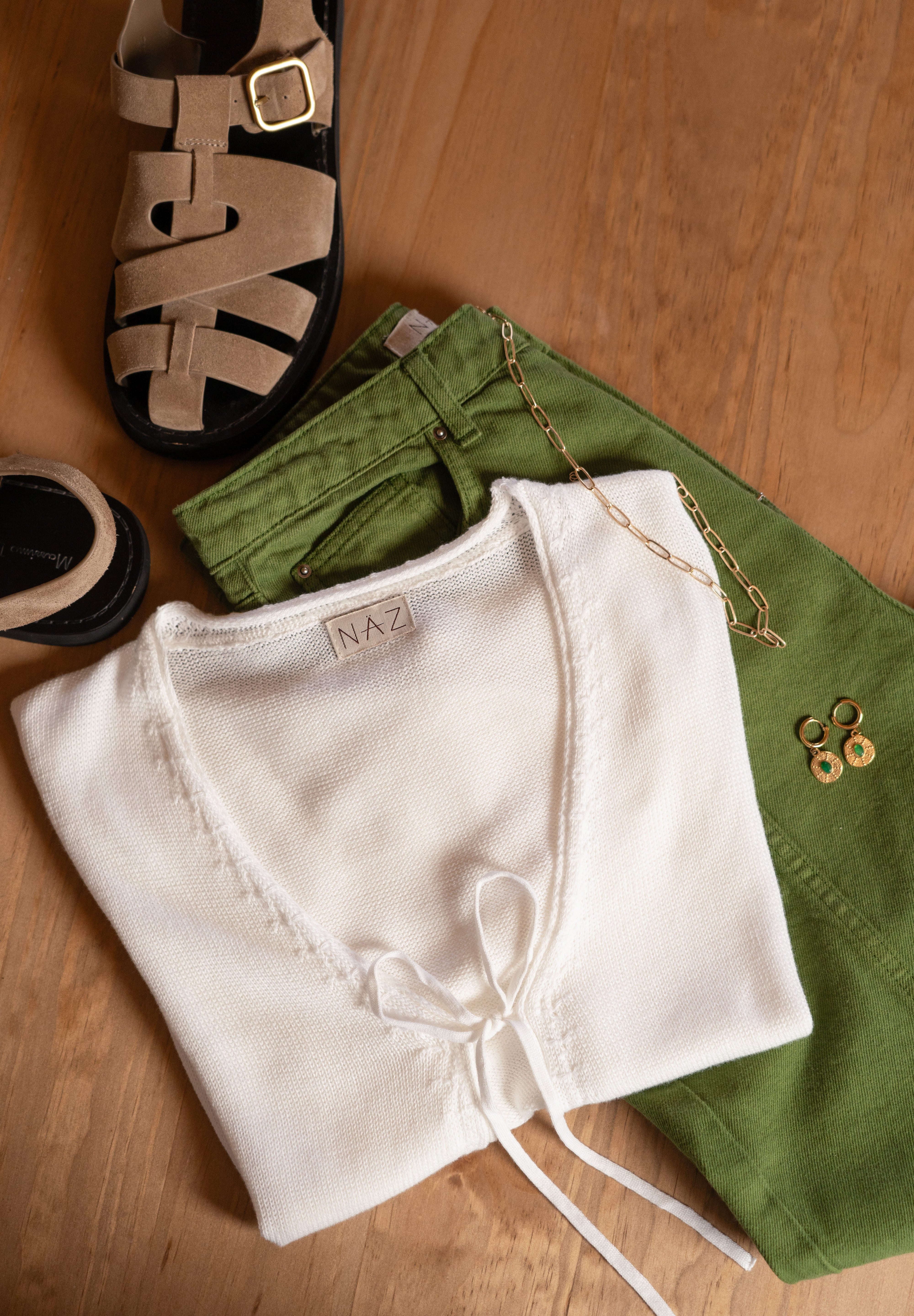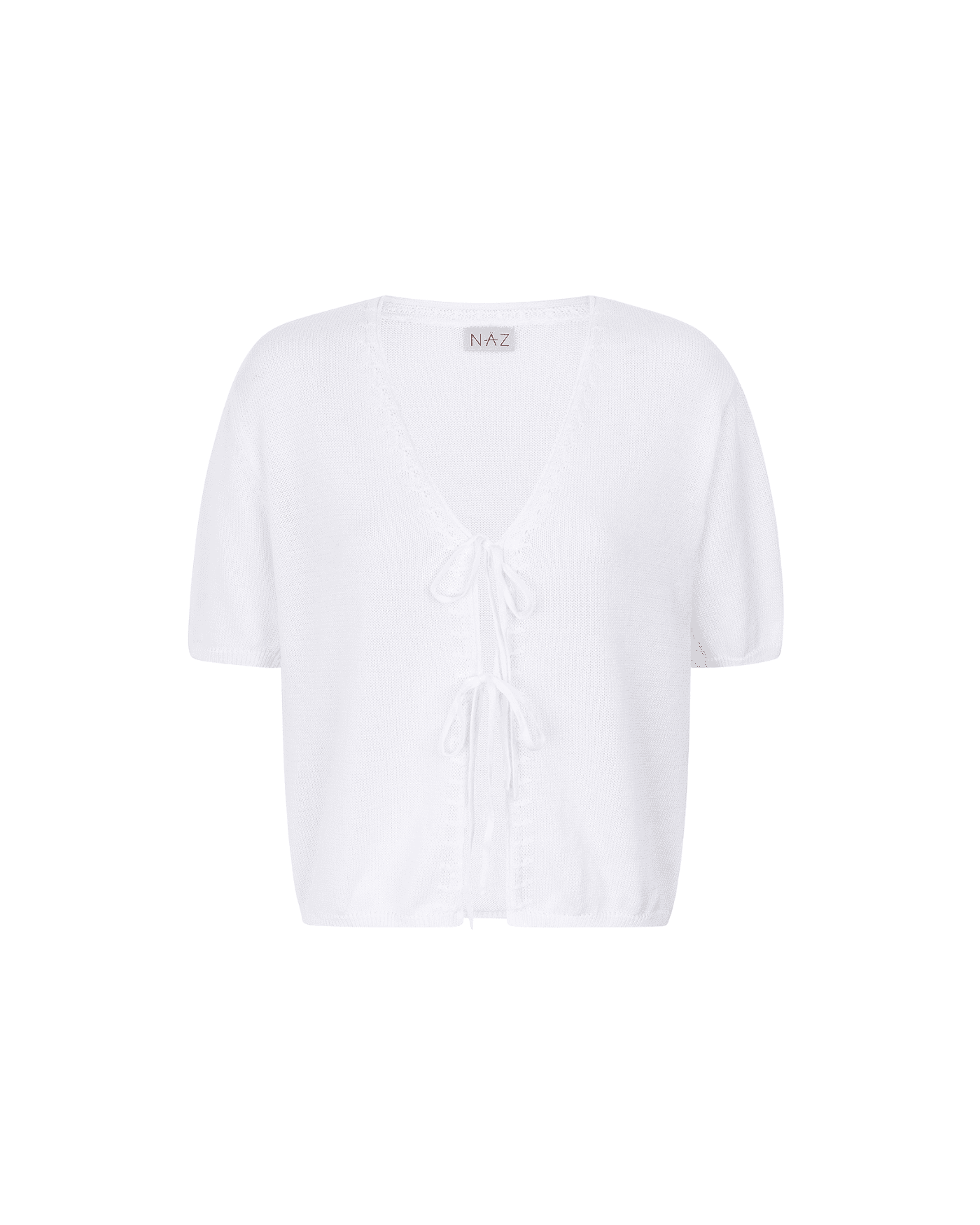Dieses trendige, kurzärmlige Stricktop ist ein Muss für Deine Frühlingsgarderobe. Das perfekte Oberteil, um es allein, als Frühlingsjacke oder sogar am Strand mit einem Bikini zu tragen.