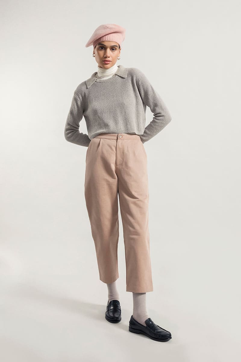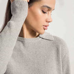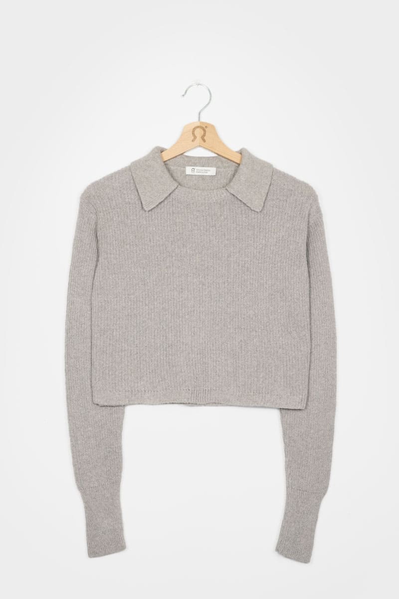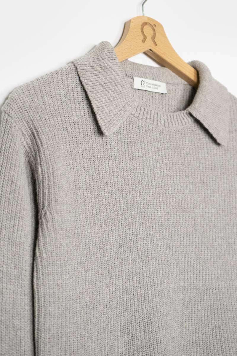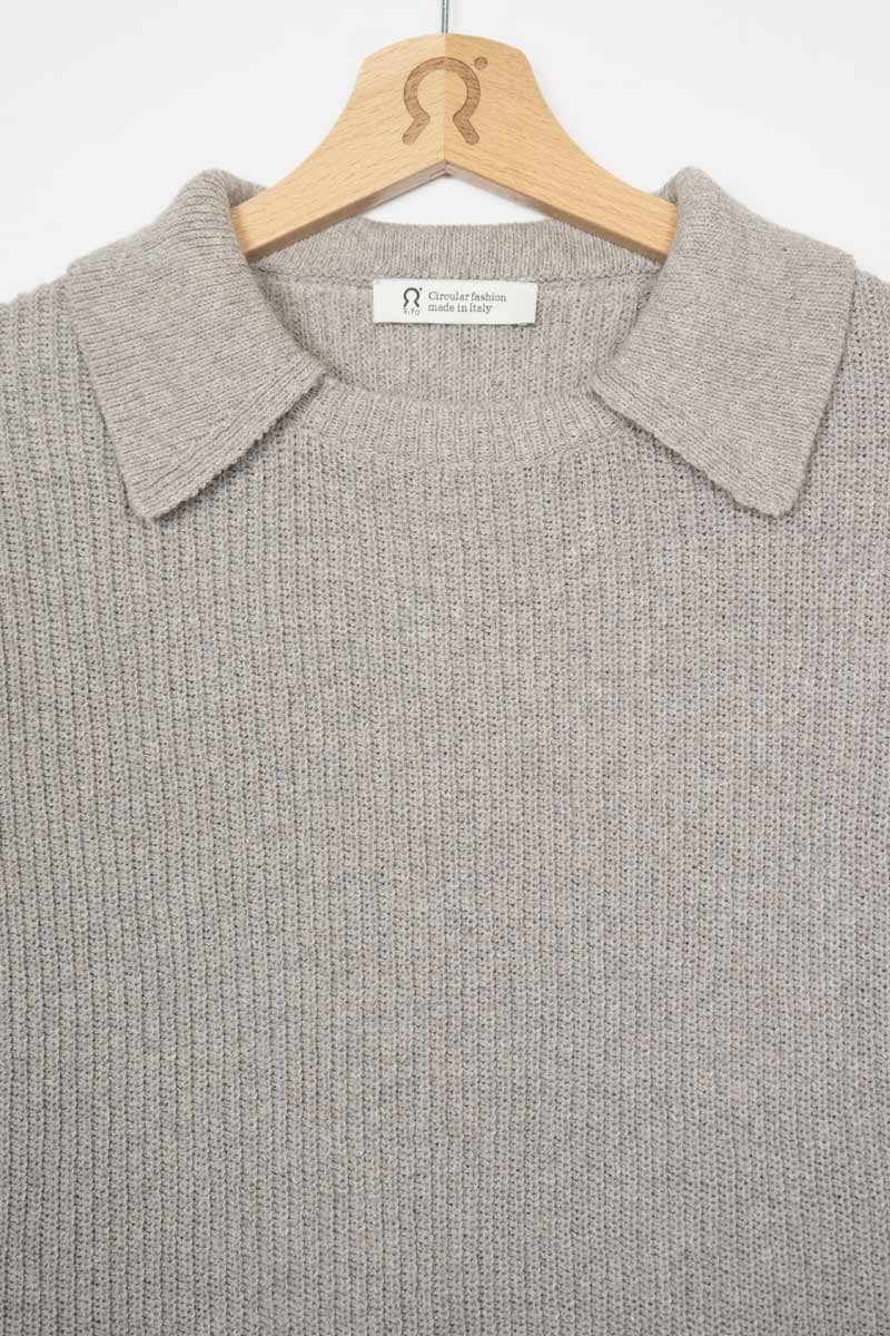 Der Pullover Olivia aus Baumwolle mit doppeltem Polokragen wird aus einem nachhaltigen Garn hergestellt, das zur Hälfte aus biologischem Anbau und zur Hälfte aus recycelten Industrieabfällen gewonnen wird und somit vollständig biologisch abbaubar ist.