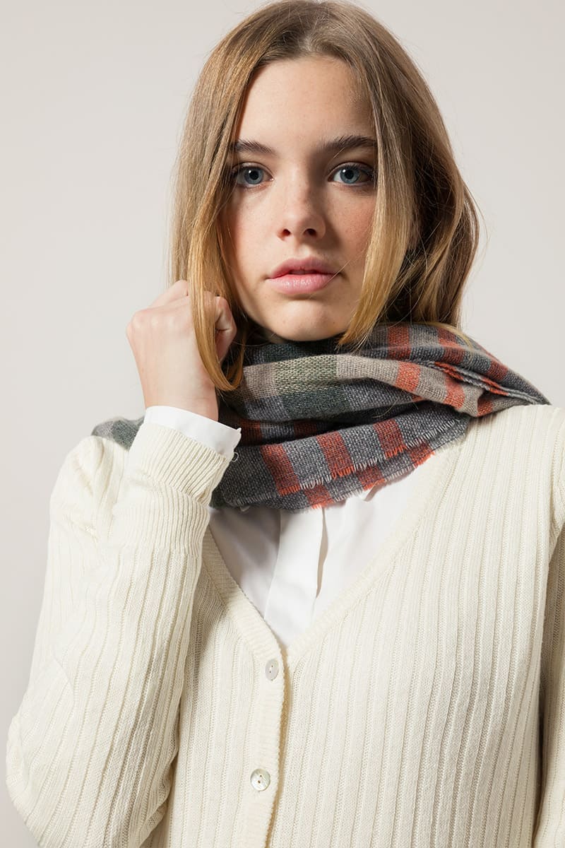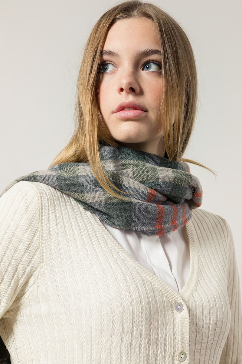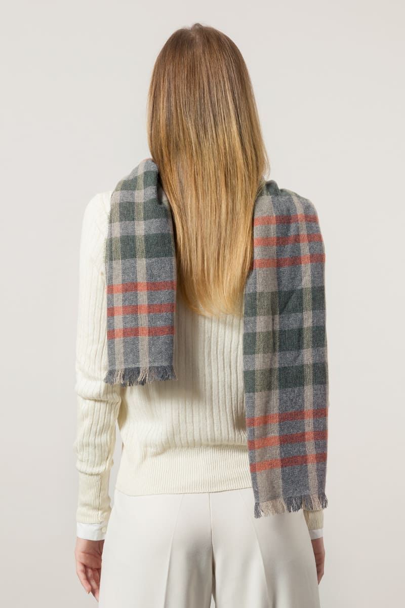 Calimala ist ein Schal aus recyceltem Kaschmir, der leicht und dennoch warm und bequem ist, da er auf dem Webstuhl gewebt wird und dadurch eine luftige, leichte Textur aufweist. Dieser nachhaltige Kaschmirschal hat ein raffiniertes Schottenmuster. Ein wichtiger Evergreen im Kleiderschrank, wenn der Herbst Einzug hält.