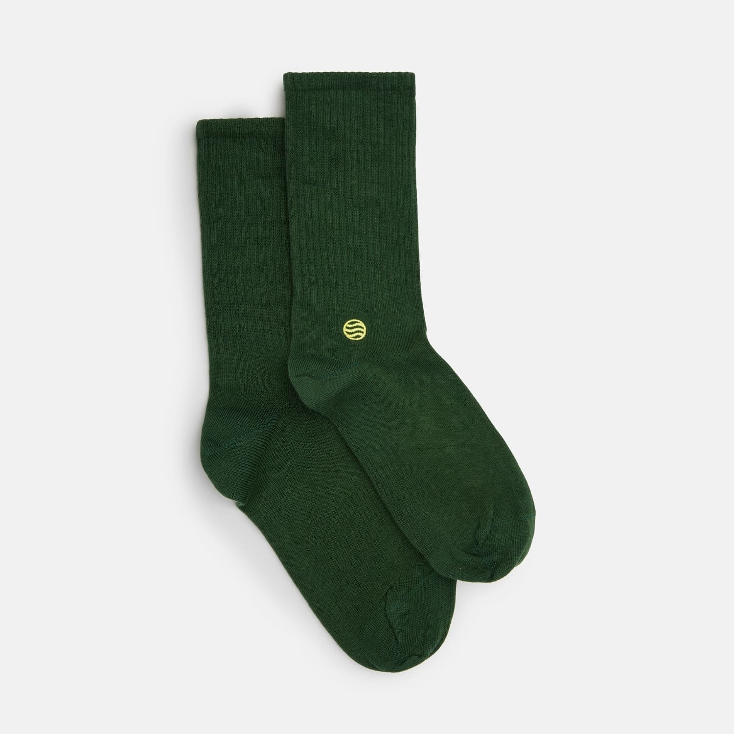 Unsere waldgrünen retro-style Tennissocken aus Bio-Baumwolle kommen nie aus der Mode.