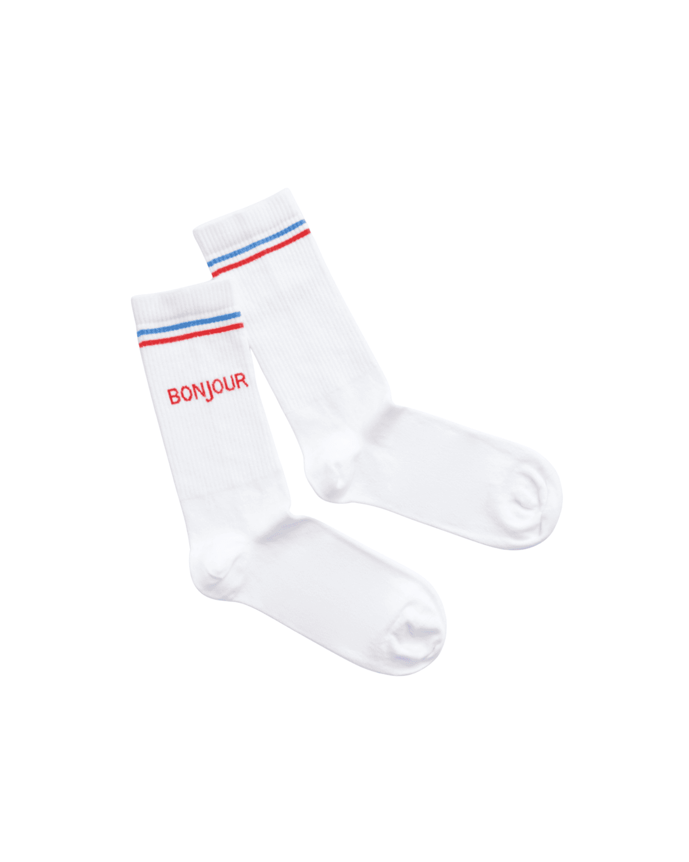 Bonjour Nos Amis! Französischer Flair mit einem Augenzwinkern - die perfekten Tennissocken für die Paris Fashion Week.