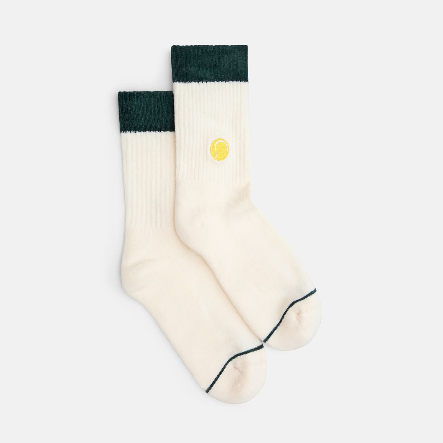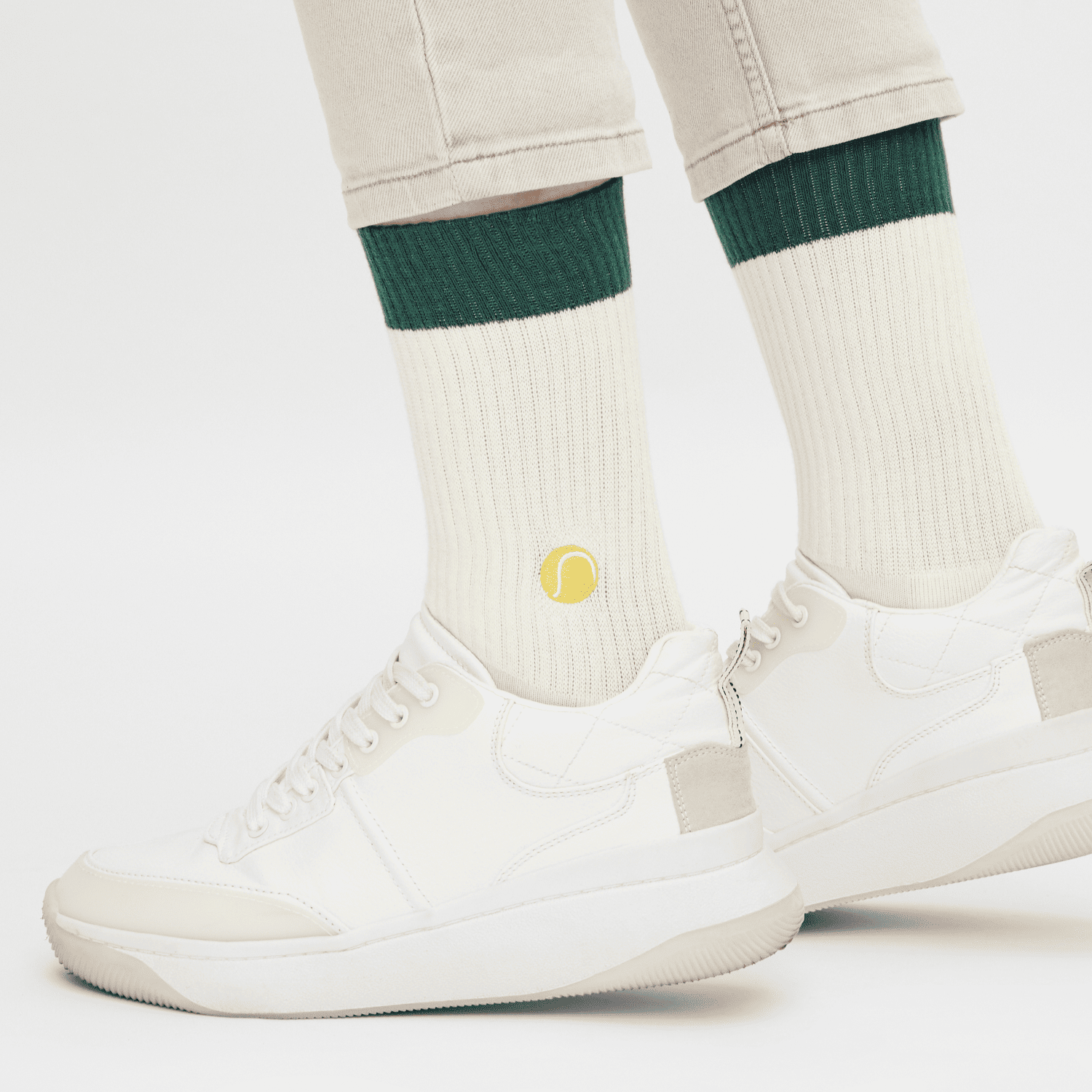 Nicht nur für Tennisfans – unsere Bio-Tennissocken mit detailliertem gesticktem Tennisballmotiv.