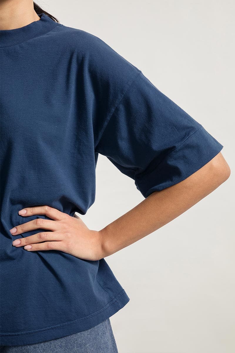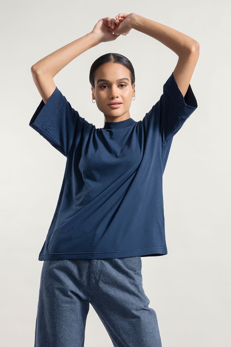 Das oversized Nana T-Shirt ist ein luftiges und nachhaltiges Unisex-Kleidungsstück. Hergestellt aus 100% Baumwolle, zur Hälfte aus Bio-Baumwolle und zur Hälfte aus industriellen Abfällen recycelt.