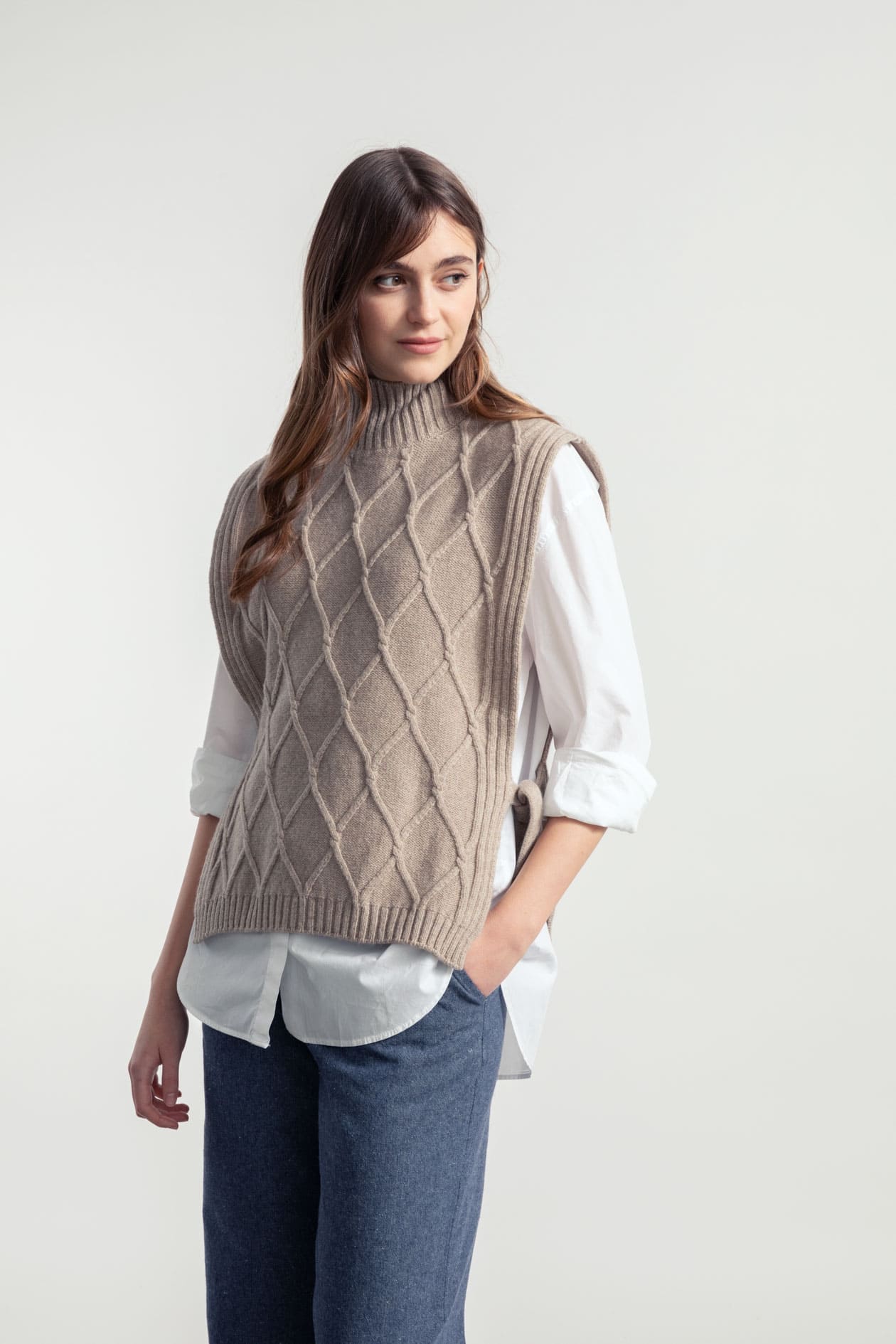 Weste Delia aus recycelter Wolle - Beige Sabbia