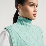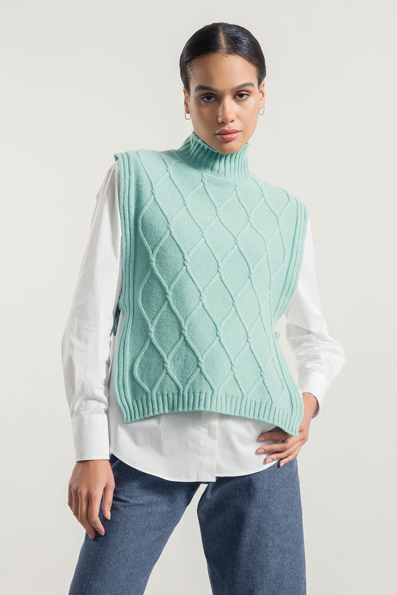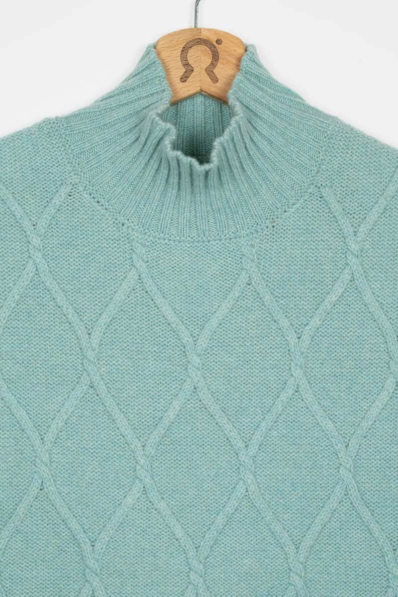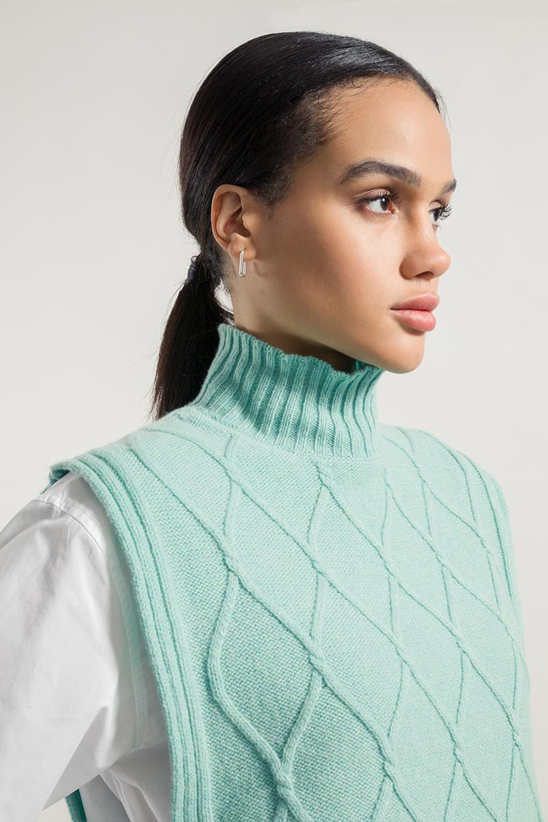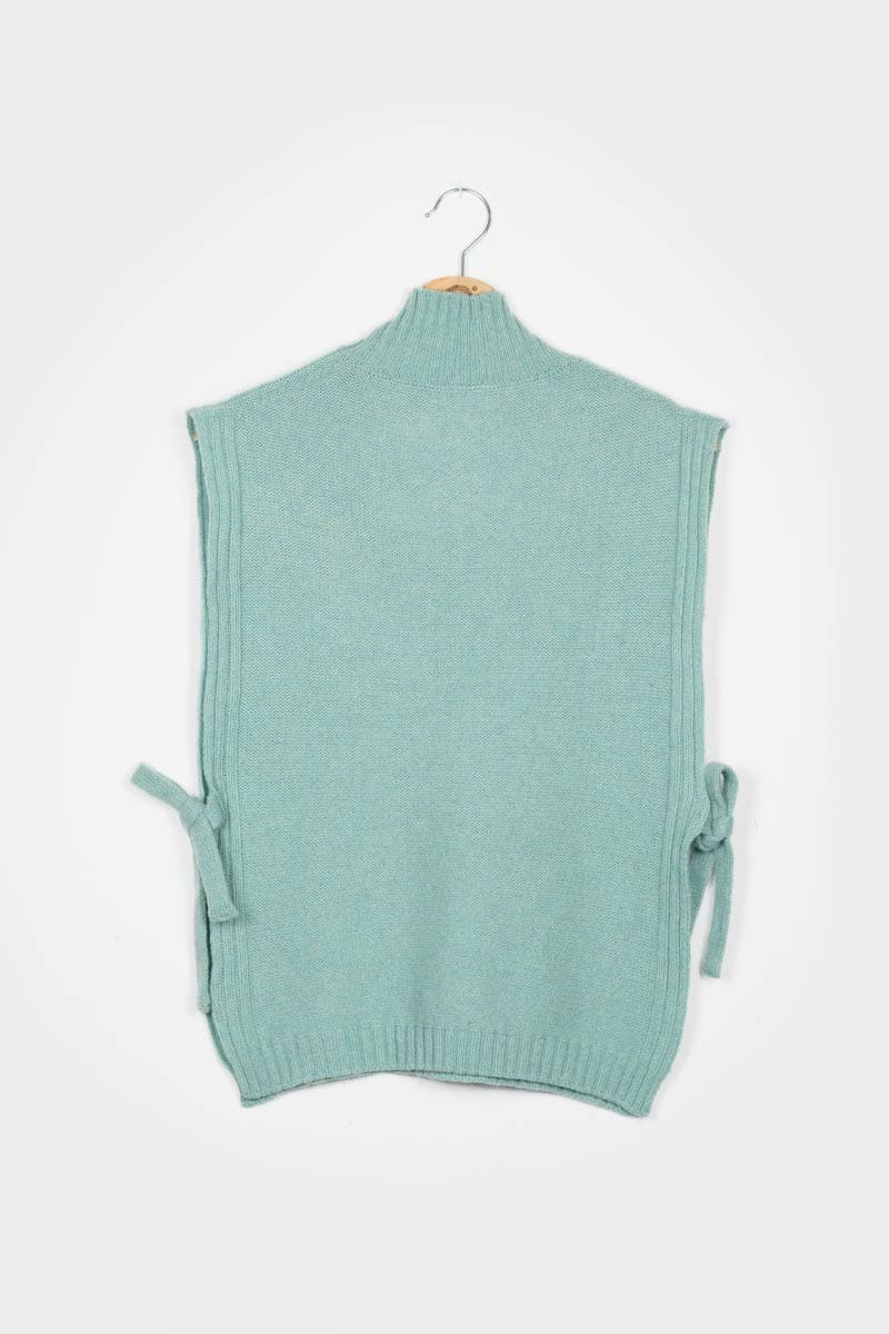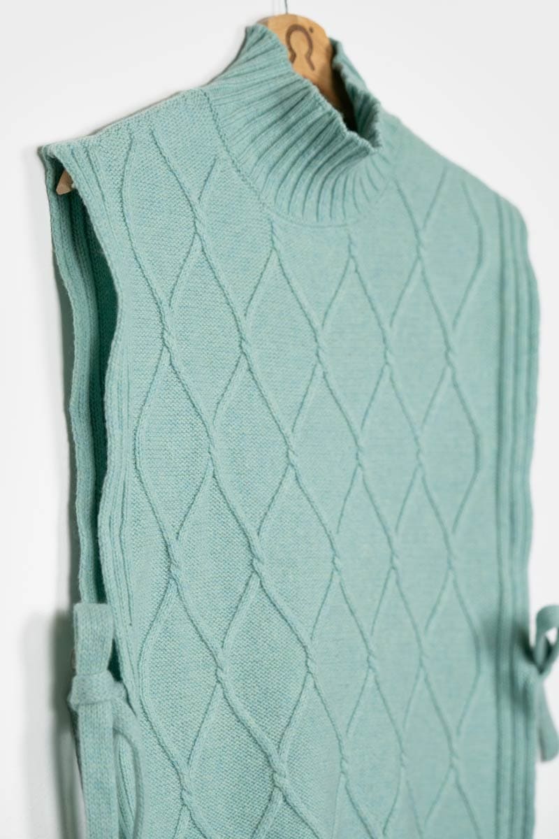 Dank der Kordelzüge wird dieses Kleidungsstück aus recycelter Wolle zu einem Strickoberteil für besondere Outfits. Es schützt vor Kälte, wenn es unter einem Mantel getragen wird. Der gerippte Stehkragen dieses Halswärmers ist kuschelig und warm.